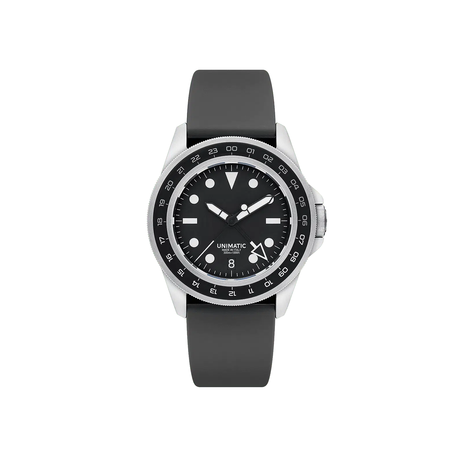 The Modello Uno ref. U1-GMT is a limited edition military watch equipped with a Japanese automatic GMT movement. The matte black dial matching the 24h bezel, makes it the perfect dual-time watch for everyday wear.
