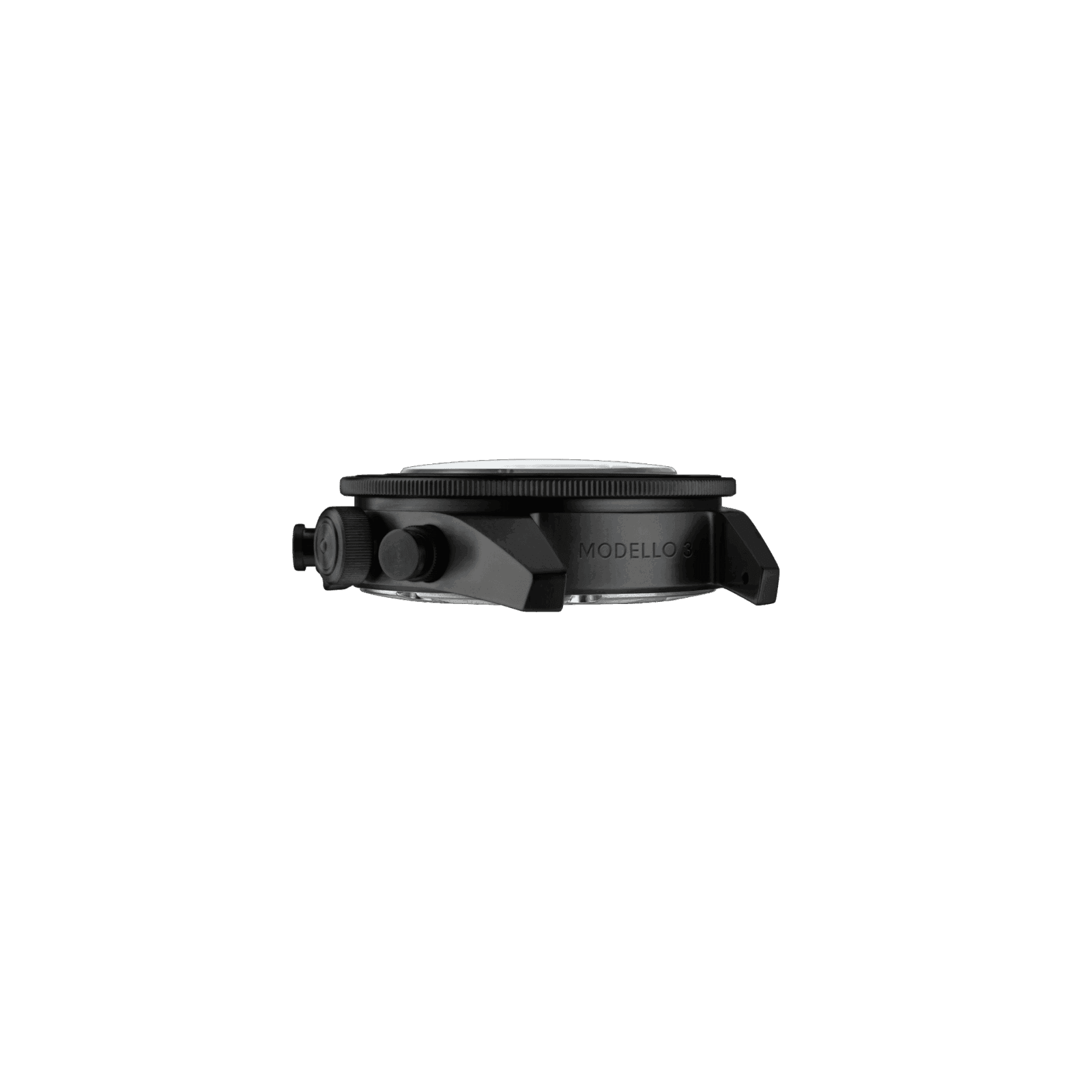 The Modello Tre ref. U3S-M is a premium Made in Italy automatic chronograph crafted with uncompromising attention to detail. It features a matte black index dial with two off-black concentric subdials, complemented by a matte black stainless-steel bezel insert with a DLC sandblasted finish.