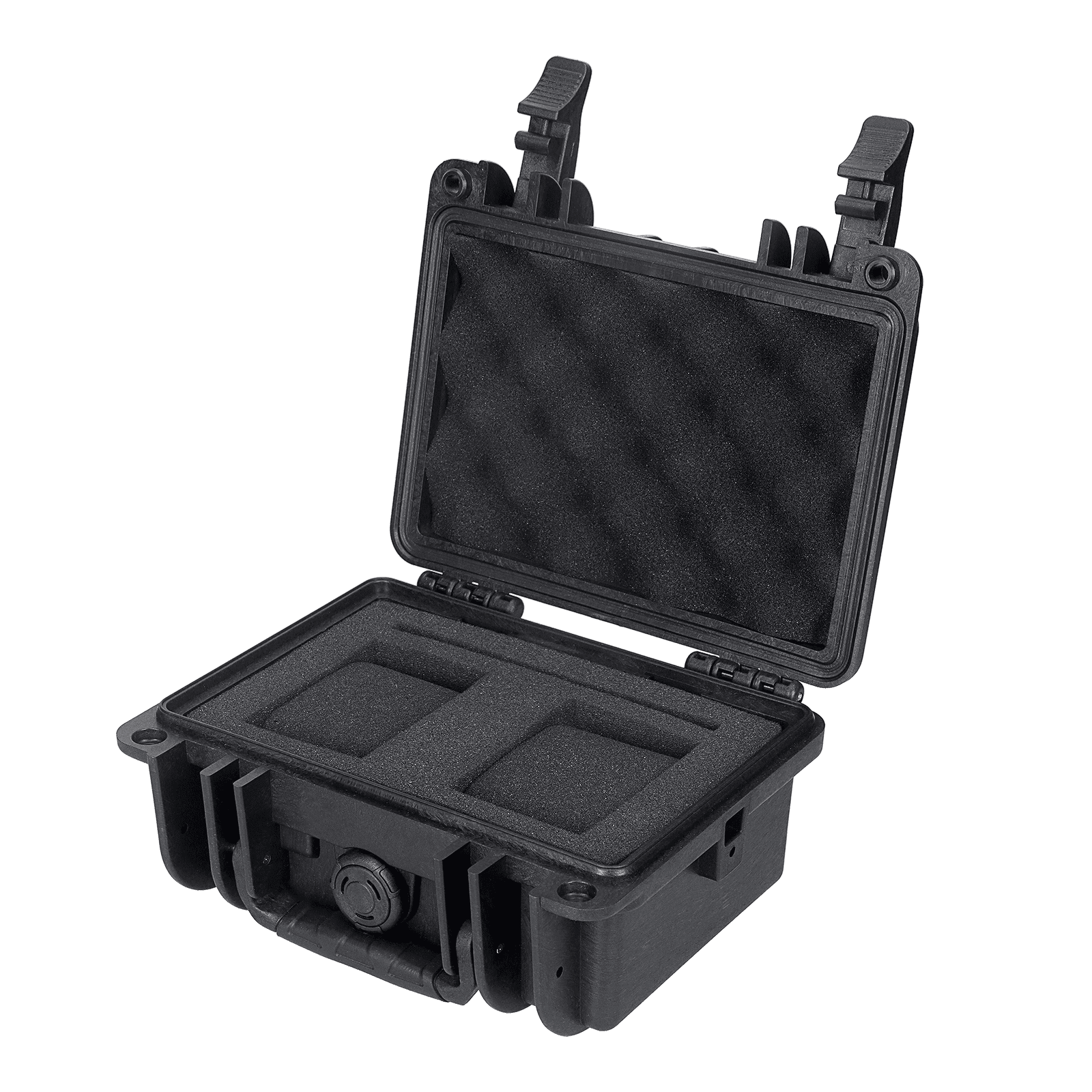 The brushed black DLC stainless steel case, screw-down caseback, 8mm crown, and high-quality gaskets ensure water resistance individually tested to 30 atm = 300m = 1000ft.