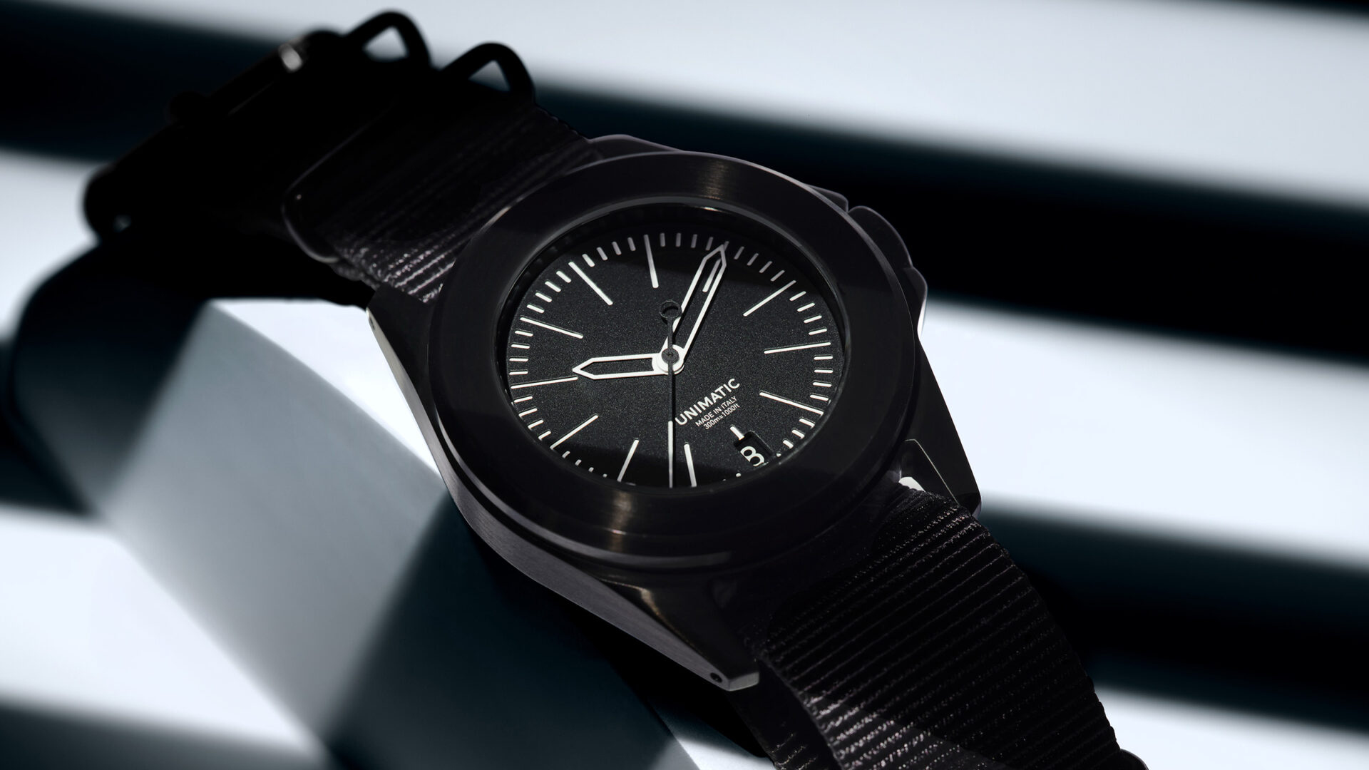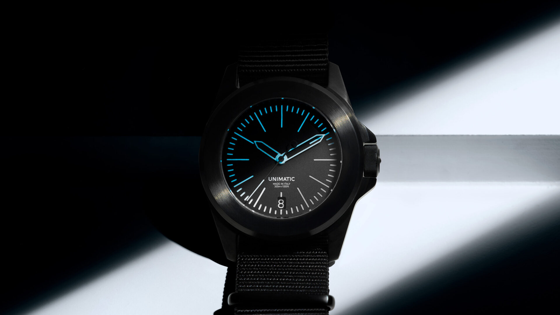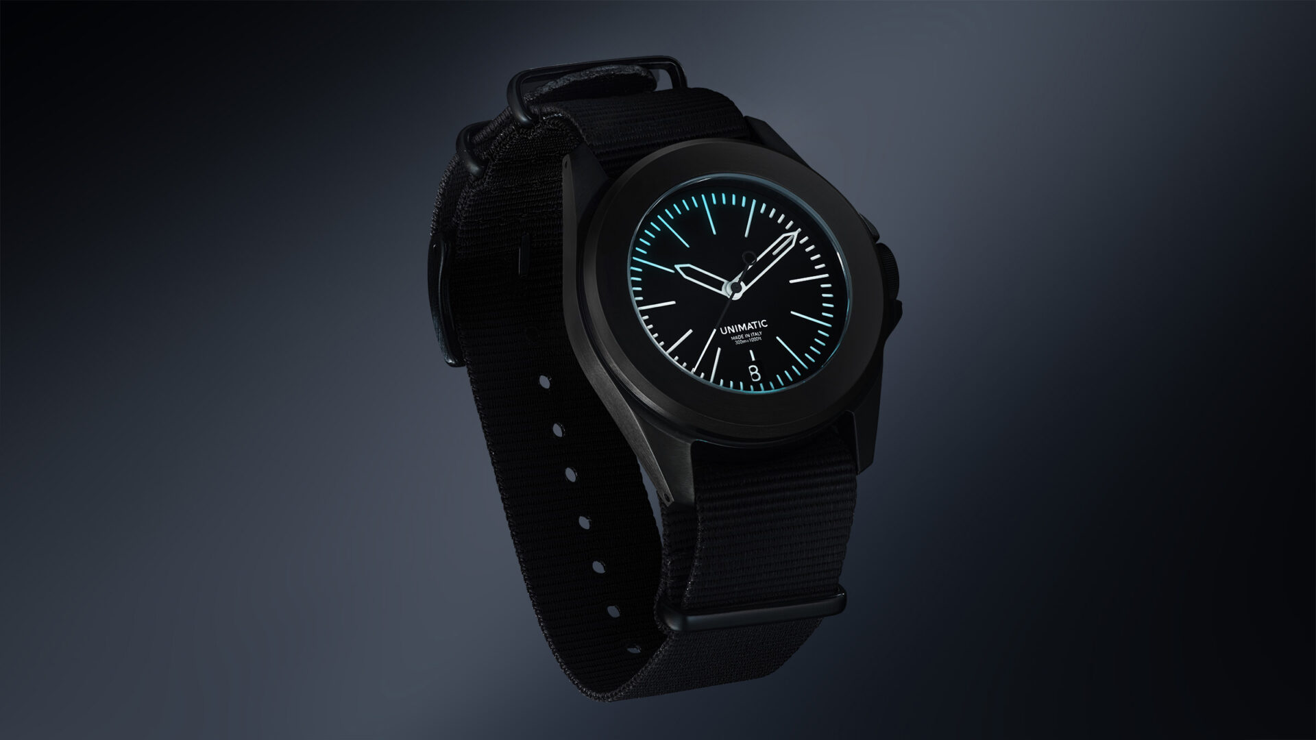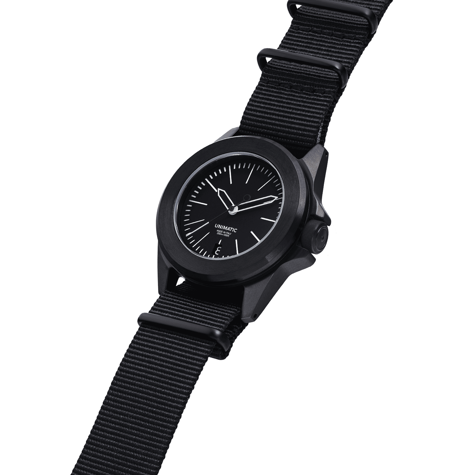 The U4-BLB comes on a black nylon NATO strap with black DLC brushed stainless steel hardware signed UNIMATIC. The caseback features an Index engraving and the individual progressive number, making each watch unique.
