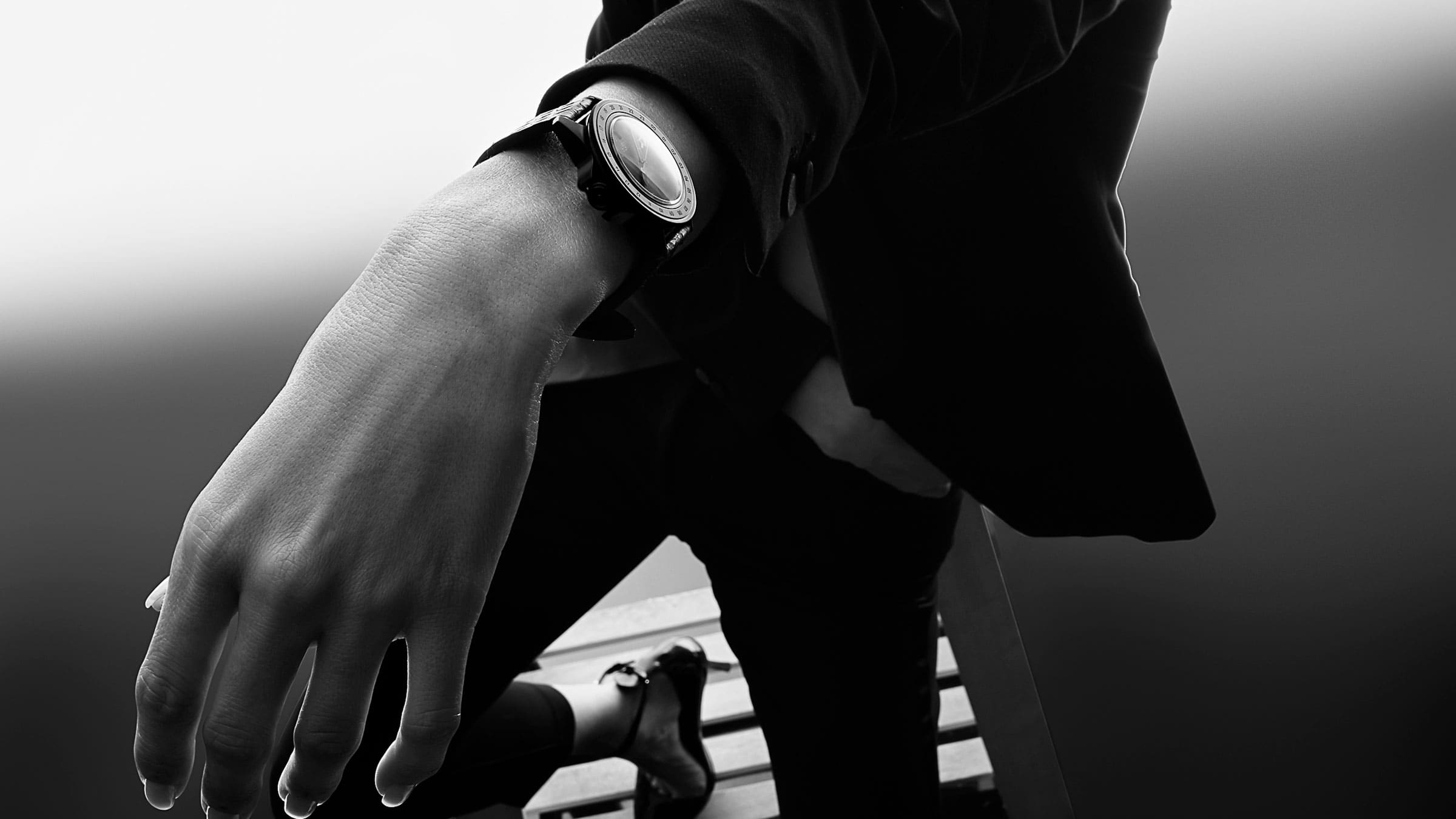 The phantom hands-set matches the dial color scheme, as the black engraved twenty-four hours bezel insert. The double-domed anti-reflective sapphire crystal provides the best performance in every light condition and provides a cool blue reflex along its edge under a particular light angle.