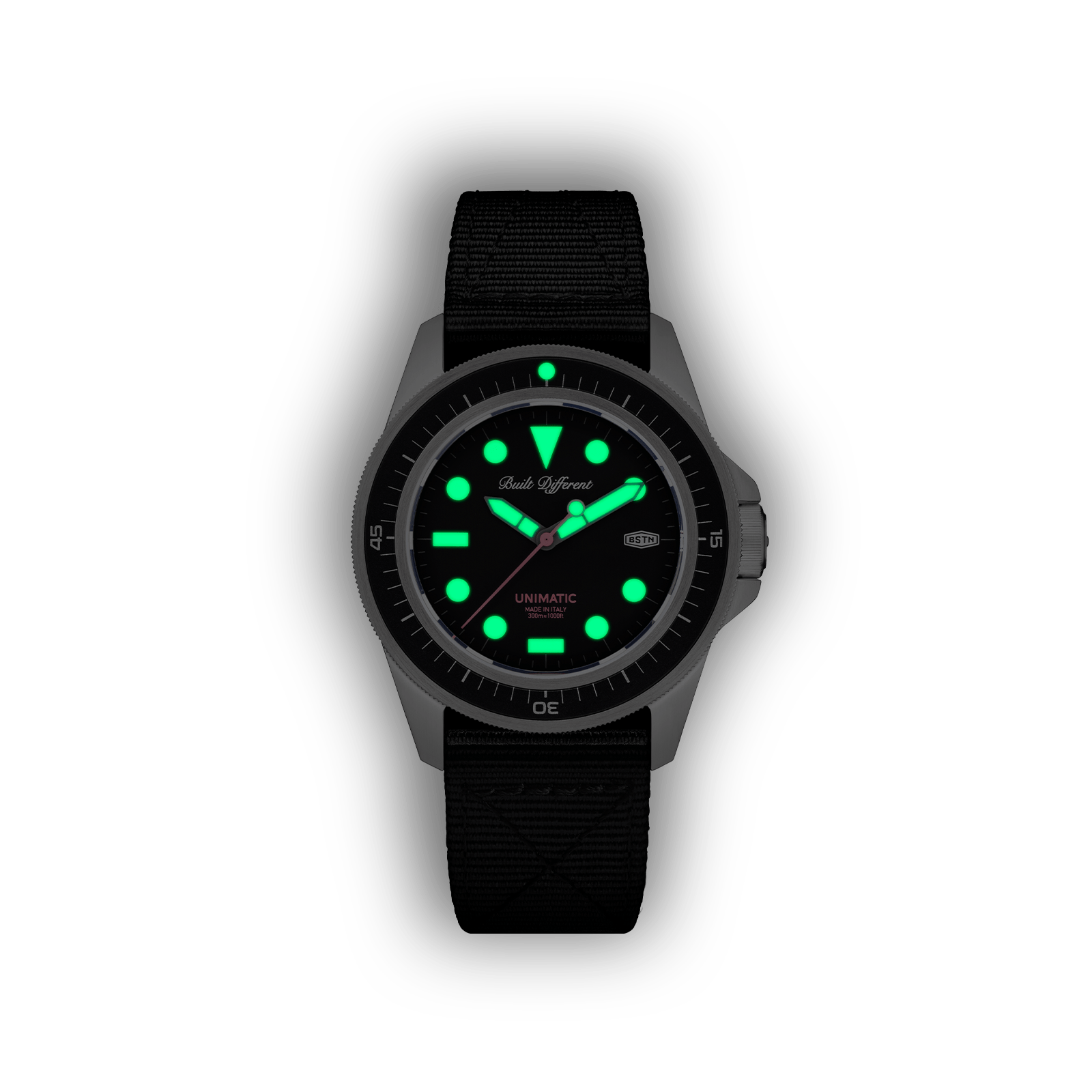 The Modello Uno UT1-BSTN is a limited-edition dive watch designed in partnership with BSTN to celebrate the store’s 10th anniversary. This exclusive model features a matte black dial with the BSTN logo at H3 and the “Built Different” cursive logo, combining minimalist aesthetics with premium performance.
