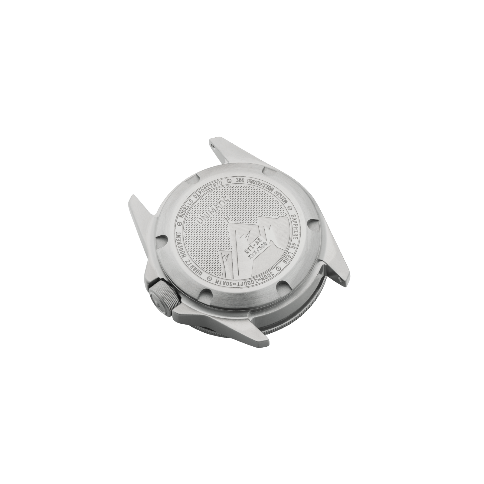 The 360° protection system, designed in-house and Made in Italy, is crafted to the highest standards. Realised in a special blend of thermoplastic polyurethane (TPU), its custom construction — composed of a 360° protection shell that holds the movement and a dial top protective ring — allows the watch to withstand extreme environmental stress while remaining incredibly light. This reinforces the UT1-GO as one of the most durable watches made in Italy.